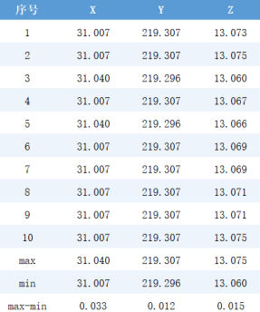 *10 static measurements, Z-axis height repeatability within 0.1mm