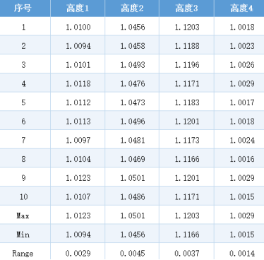 *After 10 tests, both static and dynamic height measurements remained below 0.01mm.